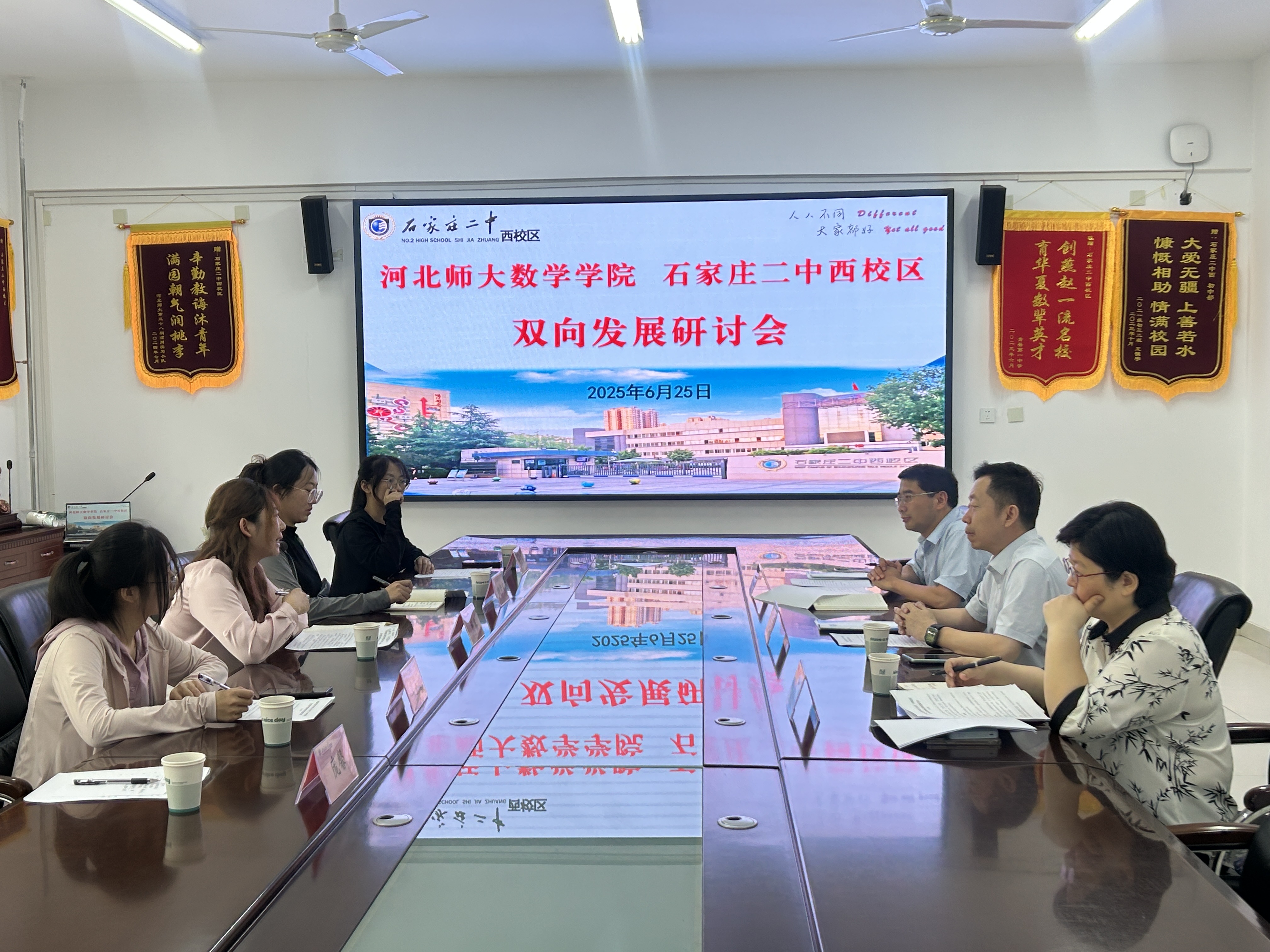 近日,学院与石家庄二中西校区联合举办教育研学暨双向发展研讨会。二中西校区副校长李建鹏、科研主任田兴辉、数学教研组组长袁海霞、学院辅导员杨鑫及2023级学生代表参加研讨会。